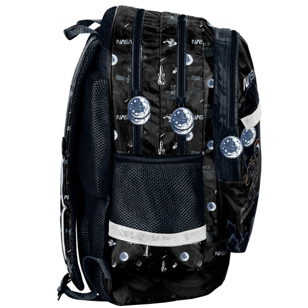 Plecak szkolny w motywie Space adventure NASA charakteryzuje się dwiema pojemnymi komorami oraz dwoma dużymi kieszeniami frontowymi. Dodatkowo, został wyposażony