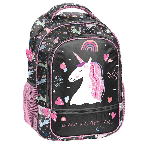 Tornister szkolny Unicorns are real łączy w sobie funkcjonalność i atrakcyjny design. Posiada jedną przestronną komorę, zamykaną na dwukierunkowy zamek