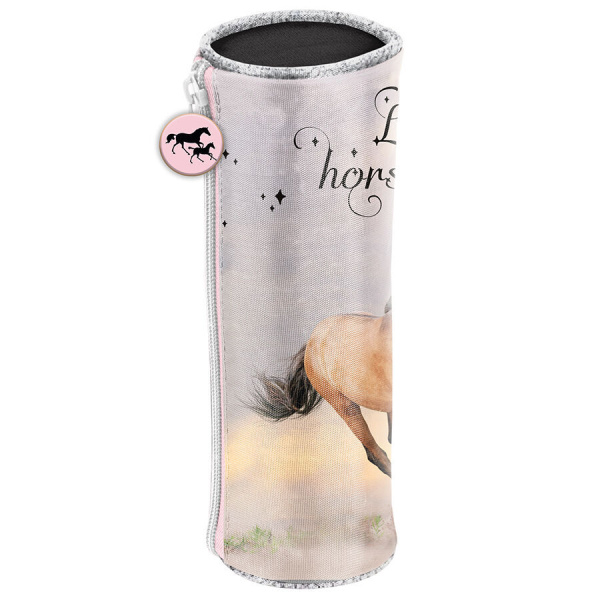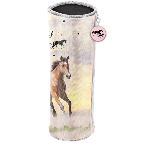 Piórnik tuba z wizerunkiem Lovely horses to stylowy i funkcjonalny wybór. Posiada jedną główną komorę, która jest zamykana na zamek