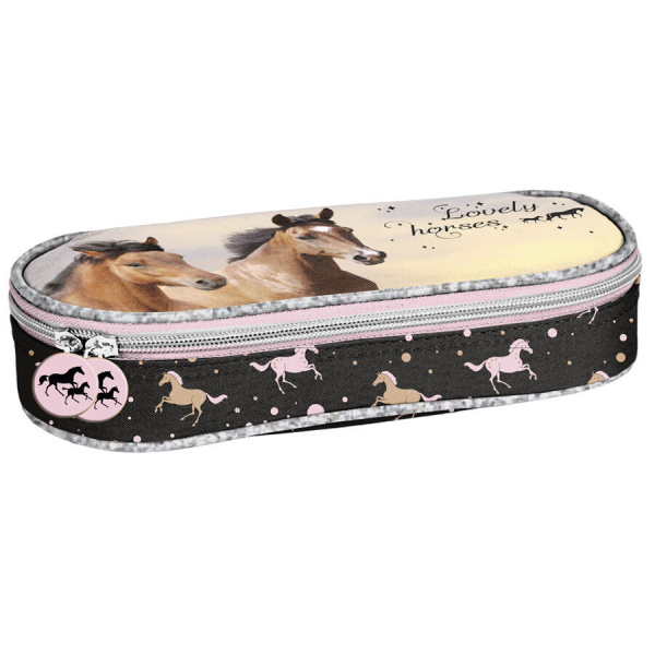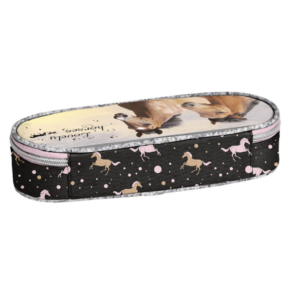 Piórnik Lovely horses w prostym, eleganckim stylu. To uniwersalny, jednokomorowy model z dwiema klapkami, które pomieszczą wszystkie niezbędne przybory szkolne.
