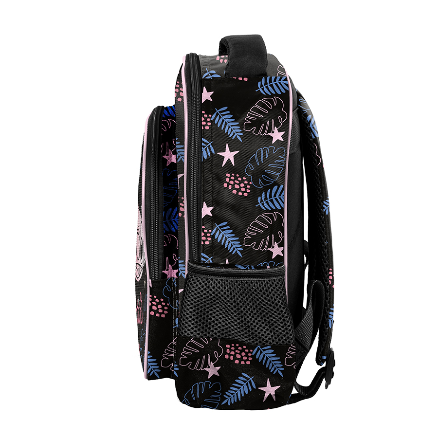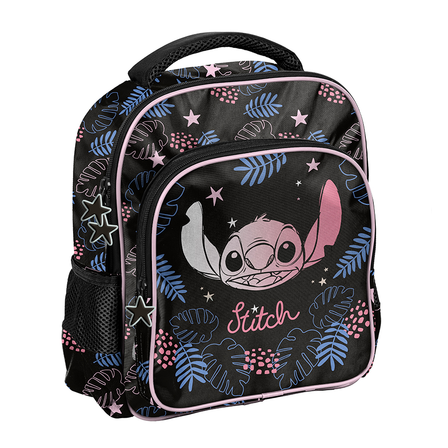 Duży plecak przedszkolny Stitch – Little Dreamer to doskonały wybór dla dzieci przygotowujących się do przedszkola lub zerówki. Plecak wyposażony jest w jedną główną komorę oraz praktyczną kieszeń z przodu. Jego plecy są lekko usztywnione, co zapewnia dodatkowy komfort noszenia. Ponadto plecak ma wygodny uchwyt do przenoszenia oraz regulowane, wyściełane gąbką szelki, co ułatwia dostosowanie do sylwetki dziecka. Dwie boczne kieszenie z siatki pomieszczą bidon, małą butelkę lub termos, co czyni go jeszcze bardziej funkcjonalnym.
