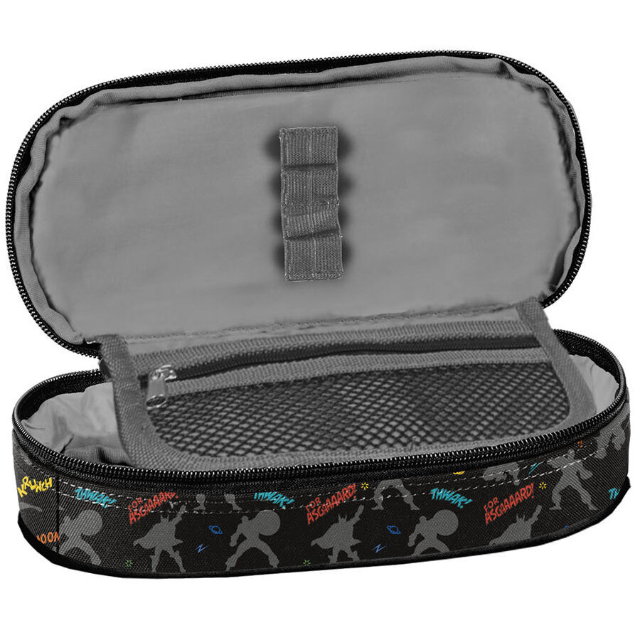Piórnik Avengers Comics Marvel to wygodny, jednokomorowy piórnik, który bez trudu pomieści najważniejsze szkolne akcesoria. Wewnątrz piórnika znajduje się klapka, na której z jednej strony zamieszczone są uchwyty na ołówki, długopisy czy inne przybory piśmiennicze, z drugiej funkcjonalna kieszonka na zamek z siatki. Stanowi świetny dodatek do klasycznych piórników, które nie pomieszczą dodatkowych przyborów, takich jak temperówka, klej, cyrkiel, korektor czy markery. W Paso staramy się, aby nasze produkty były niezwykle poręczne i uniwersalne. Ten piórnik sprawi, że wszystko będzie znajdowało się zawsze na swoim miejscu.