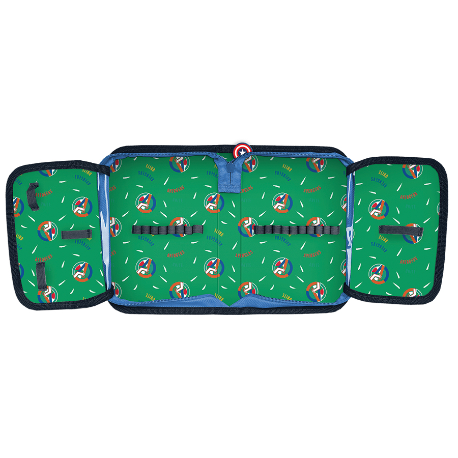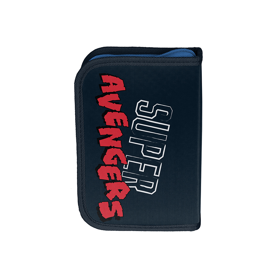 Piórnik bez wyposażenia Avengers. Uniwersalny, jednokomorowy model z dwiema klapkami na przybory, zapinany na zamek błyskawiczny. Piórnik bez trudu pomieści najważniejsze szkolne akcesoria, a znajdujące się wewnątrz uchwyty pozwalają zachować idealny porządek wśród przyborów.