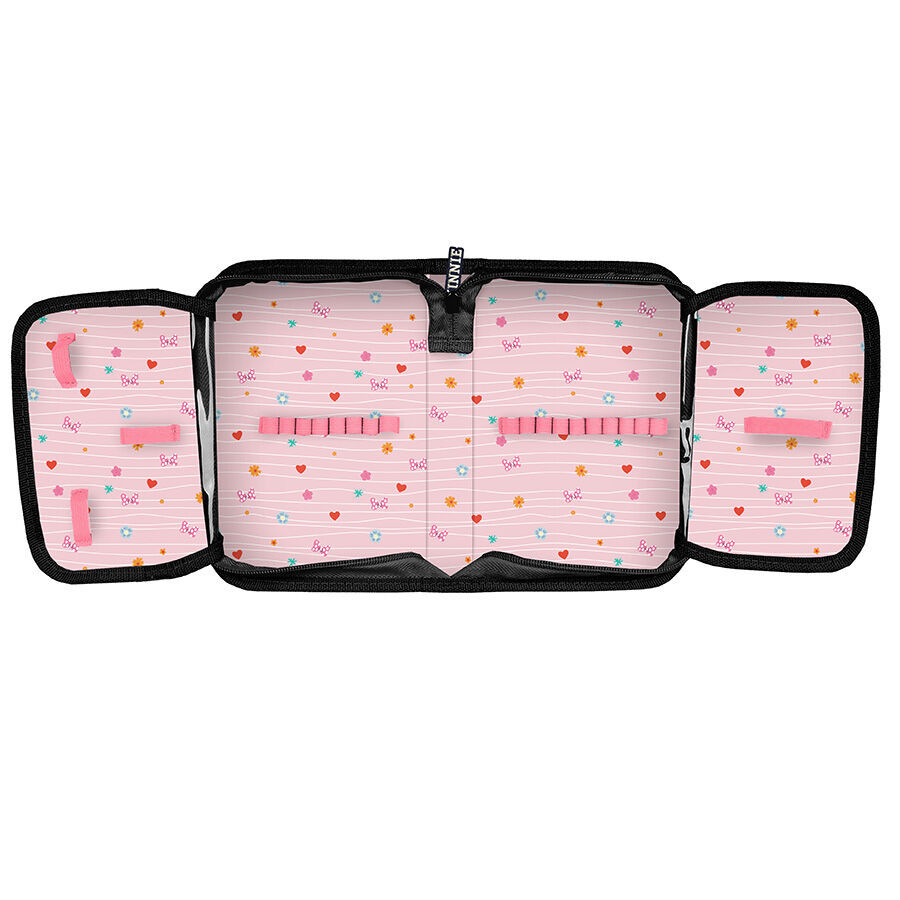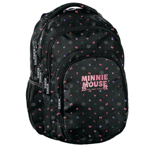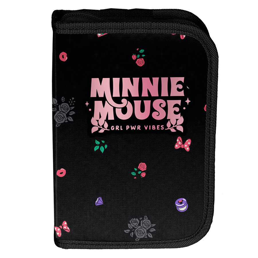 Piórnik bez wyposażenia Myszka Minnie GRL PWR. Jest to uniwersalny model jednokomorowy, wyposażony w dwie klapki na przybory, zamykany na zamek błyskawiczny. Piórnik bez trudu pomieści najważniejsze akcesoria szkolne, a znajdujące się wewnątrz uchwyty umożliwiają zachowanie idealnego porządku wśród przyborów. Dzięki odpowiednim wymiarom nie zajmuje on dużo miejsca w plecaku szkolnym.