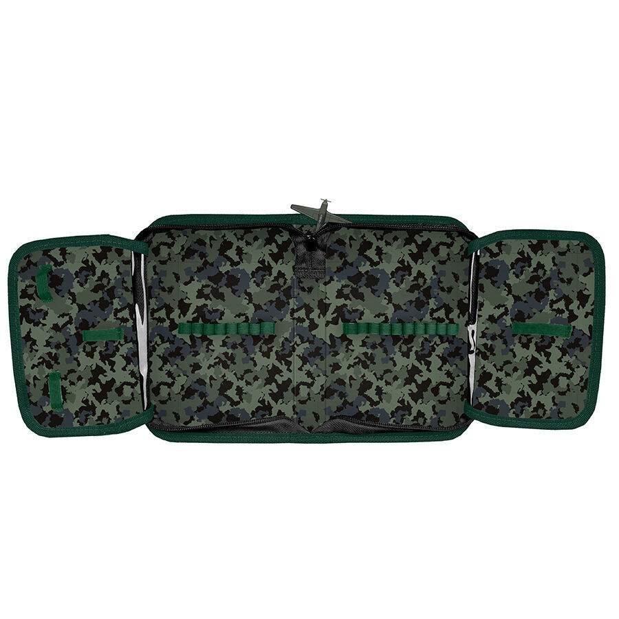 Piórnik bez wyposażenia Flying Academy. Uniwersalny, jednokomorowy model z dwiema klapkami na przybory, zapinany na zamek błyskawiczny. Piórnik bez trudu pomieści najważniejsze szkolne akcesoria, a znajdujące się wewnątrz uchwyty pozwolą zachować idealny porządek wśród przyborów. Dzięki swim idealnym wymiarom nie zajmuje dużo miejsca w plecaku szkolnym.