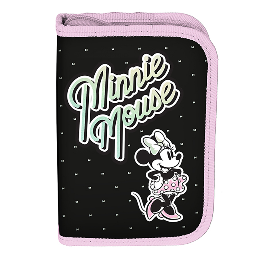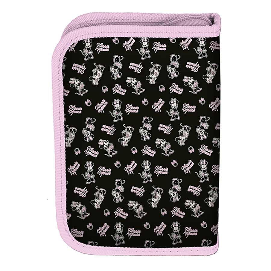Piórnik bez wyposażenia Minnie. Uniwersalny, jednokomorowy model z dwiema klapkami na przybory, zapinany na zamek błyskawiczny. Piórnik bez trudu pomieści najważniejsze szkolne akcesoria, a znajdujące się wewnątrz uchwyty pozwolą zachować idealny porządek wśród przyborów.
