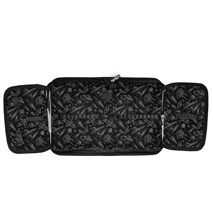 Piórnik Nasa w wersji bez akcesoriów to uniwersalny, jednokomorowy model, posiadający dwie klapki na przybory, zamykany na trwały zamek błyskawiczny. Jego obszerna budowa pomieści wszystkie potrzebne akcesoria edukacyjne, a wewnętrzne uchwyty ułatwią organizację przyborów. Dzięki idealnym rozmiarom piórnik nie zajmuje zbyt wiele miejsca w tornistrze szkolnym.