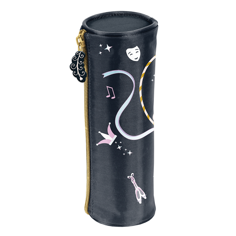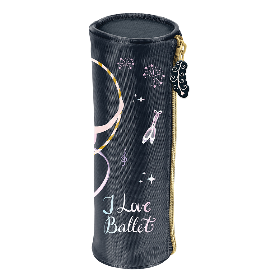 Piórnik tuba Ballerina. Produkt składa się z jednej głównej komory zapinanej na zamek błyskawiczny z ozdobnym pullerem ułatwiającym zamykanie. Idealnie pomieści wszelkie niezbędne artykuły piśmiennicze oraz przybory szkolne.