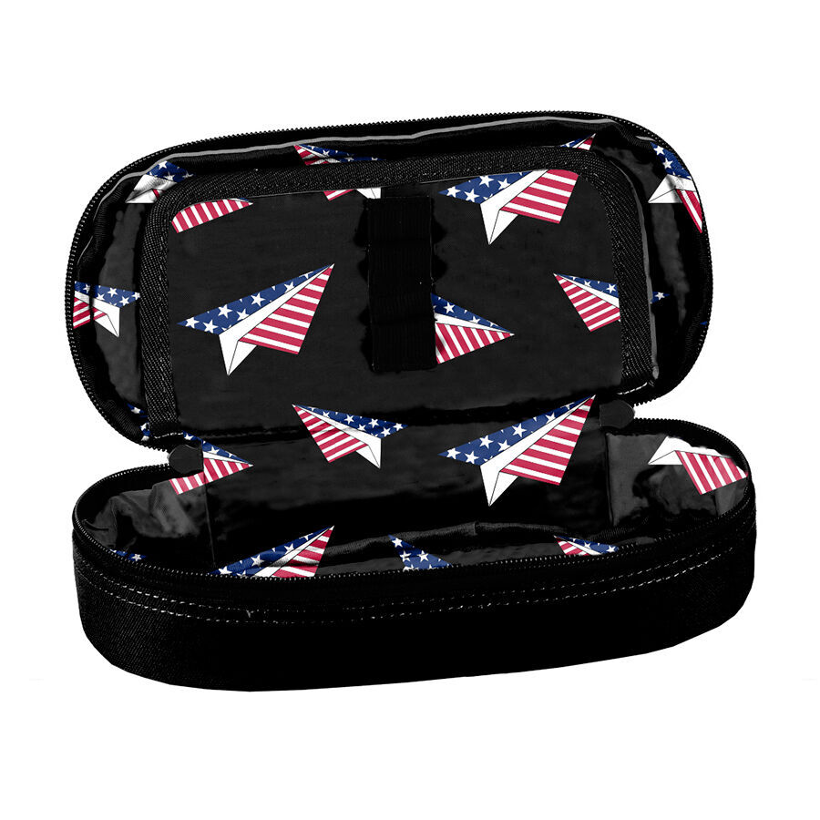 Piórnik USA NASA to niezwykle funkcjonalny, jednokomorowy dodatek, który z łatwością pomieści wszystkie niezbędne szkolne akcesoria. W jego wnętrzu znajduje się klapka z dwoma praktycznymi rozwiązaniami: z jednej strony umieszczono uchwyty na ołówki, długopisy oraz inne przybory piśmiennicze, a z drugiej – wygodną kieszonkę na zamek wykonaną z siatki. To doskonała alternatywa dla tradycyjnych piórników, które często nie mają wystarczająco dużo miejsca na dodatkowe przybory, takie jak temperówki, kleje, cyrkle, korektory czy markery. W Paso dążymy do tego, aby nasze produkty były nie tylko praktyczne, ale również uniwersalne. Z tym piórnikiem wszystko zawsze będzie mieć swoje miejsce.