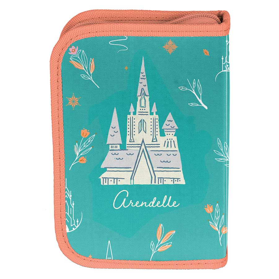 Piórnik z wyposażeniem Frozen. Uniwersalny, jednokomorowy model z dwiema klapkami na przybory, zapinany na zamek błyskawiczny. Piórnik bez trudu pomieści najważniejsze szkolne akcesoria. Wzbogacony o wyposażenie w postaci przyborów takich jak (długopis, ołówek, 7 pisaków, 9 kredek, gumka, linijka, temperówka, ekierka). Znajdujące się wewnątrz uchwyty pozwalają zachować idealny porządek.