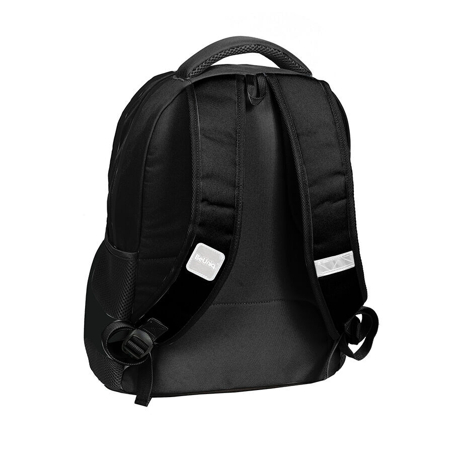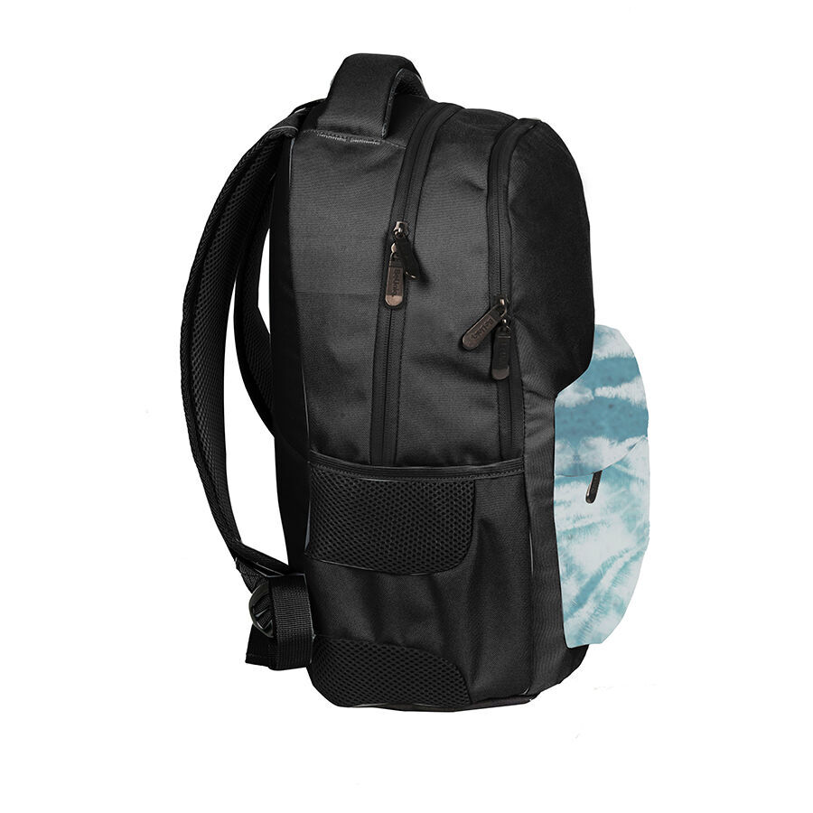 Plecak młodzieżowy Blue Tie Dye BeUniq to połączenie praktyczności i funkcjonalności. Posiada dwie obszerne komory zamykane na zamek, a także dodatkową kieszeń na froncie. Dwie boczne kieszenie z siatki doskonale nadają się na bidon, butelkę czy inne drobiazgi. Warto również zwrócić uwagę na lekko usztywnione plecy oraz regulowane szelki, które doskonale dopasowują się do sylwetki. Zewnętrzna komora została wzbogacona o organizer z przypinką na klucze, a w drugiej komorze umieszczono praktyczną kieszeń na laptopa. Całość wykonana jest z trwałego materiału, dzięki czemu ten lekki model sprawdzi się zarówno w szkole, jak i podczas wycieczek.
