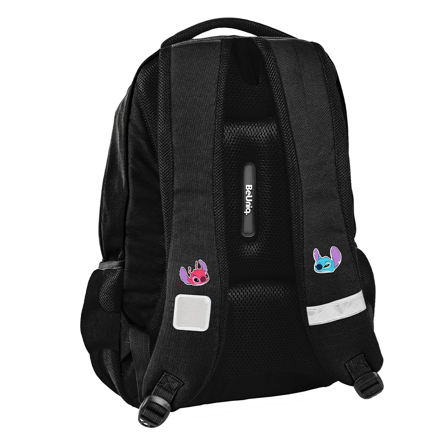 Plecak młodzieżowy Stitch – Double Trouble BeUniq to idealny wybór dla każdego młodego ucznia. Posiada trzy przestronne komory, co gwarantuje komfortową organizację miejsca. Z przodu plecaka znajduje się kieszeń z organizerem, która jest zamykana na zamek. Po bokach plecaka znajdują się dwie kieszenie z siatki, które nadają się do przechowania butelki lub bidonu.