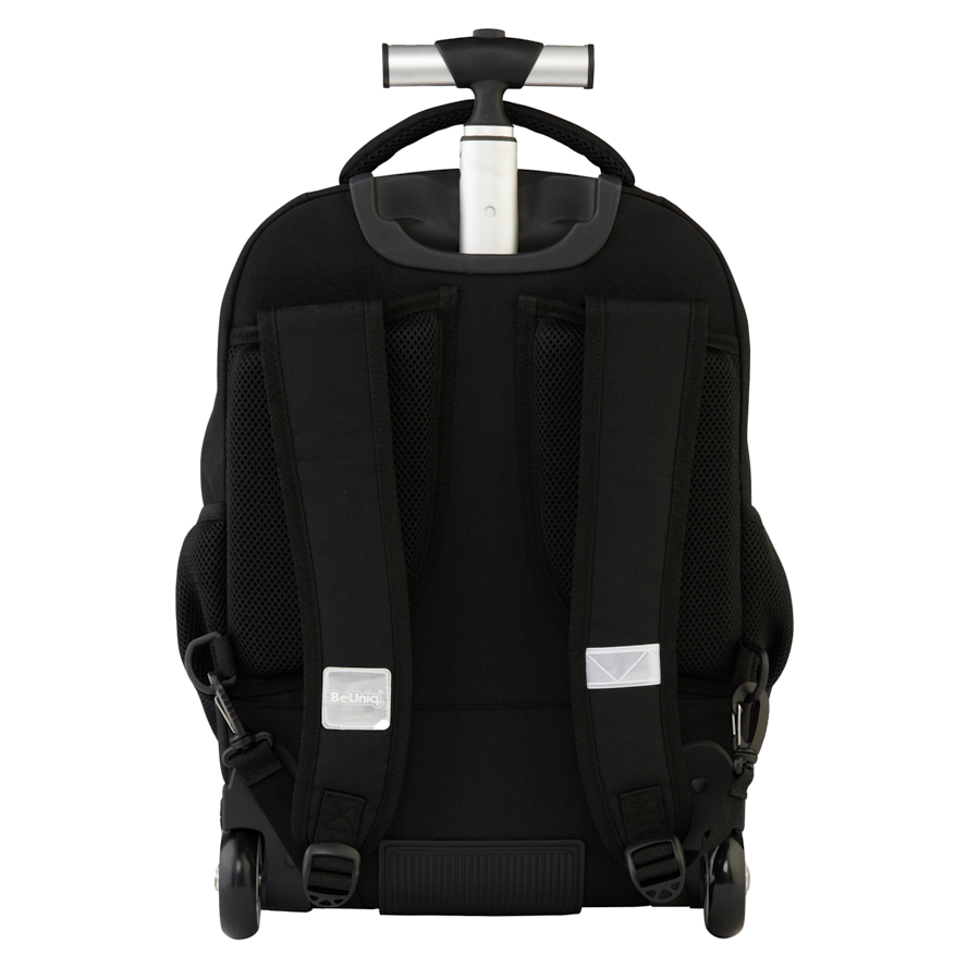 Placak na kółkach Minnie BeUniq stanowi zdrowszą alternatywę dla tradycyjnego plecaka. Dzięki możliwości poruszania się na kółkach, pozwala uniknąć konieczności noszenia dużego ciężaru na plecach. Jest wyposażony w wygodny uchwyt, duże, solidne kółka, teleskopową rączkę, a także chowaną osłonkę na kółka. Plecak posiada dwie pojemne komory zapinane na zamek, przednią kieszeń zamykaną na zamek z wygodnym organizerem wewnątrz, a także dwie boczne kieszenie z siatki, idealne na butelkę, bidon lub termos. Dodatkowo plecak jest wyposażony w elementy odblaskowe oraz wygodne, wyściełane gąbką szelki z możliwością regulacji, które mogą przydać się w przypadku, kiedy utrudnione będzie poruszanie się na kółkach. Dno plecaka jest mocno usztywnione i wzmocnione, co zapewnia większą wytrzymałość nawet podczas przenoszenia w plecaku dużych ciężarów.