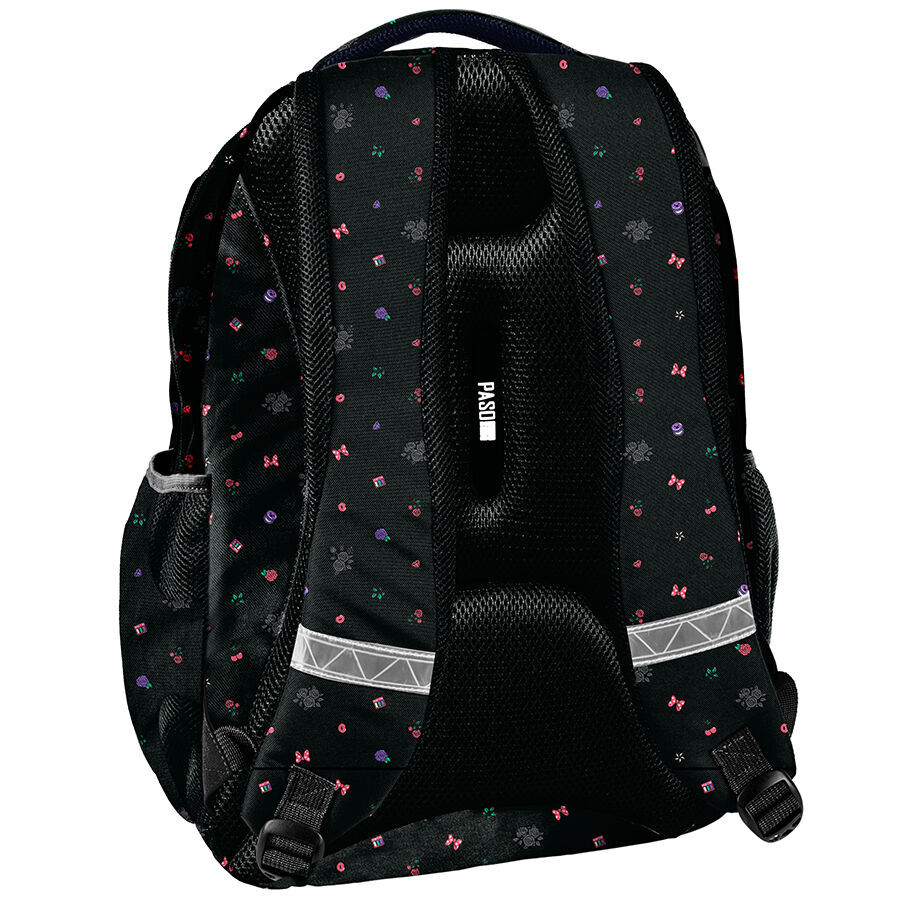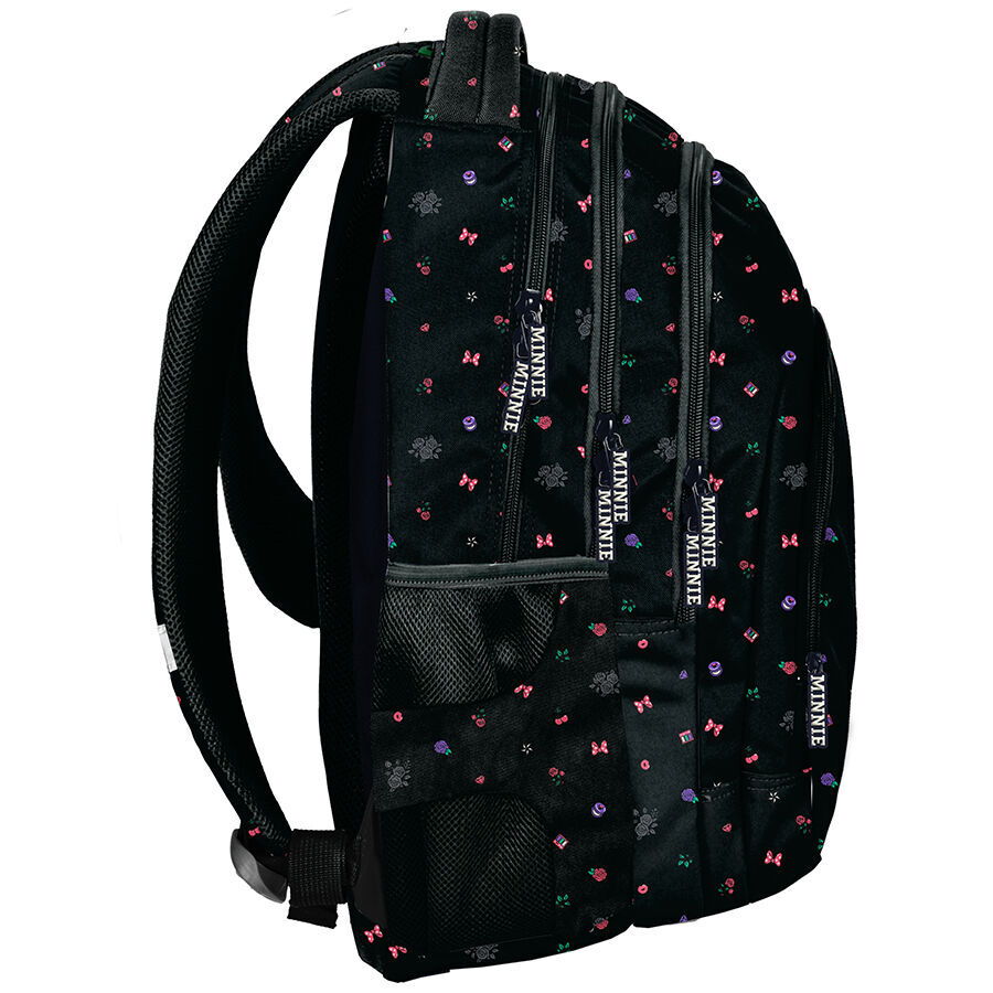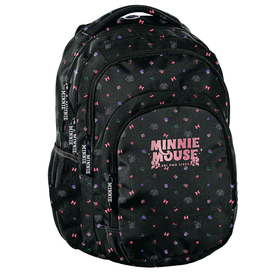 Plecak Myszka Minnie GRL PWR Paso to idealny wybór dla uczniów. Oferuje trzy pojemne komory, a także przednią kieszeń z organizerem, zamykaną na zamek. Dwie boczne kieszonki, wykonane z siatki i materiału, pomieszczą butelkę, bidon lub termos. W głównej komorze plecaka znajduje się specjalna przegroda na laptop, a w drugiej komorze organizer z kieszenią na zamek i uchwytem na klucze. Dodatkowo, jedna z kieszeni została wyposażona w praktyczne wyjście na słuchawki.