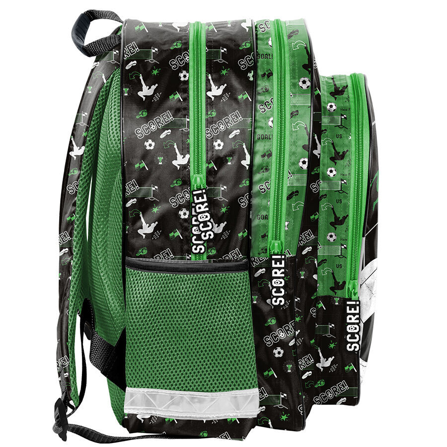 Plecak szkolny Football score to idealny wybór dla każdego małego fana tej popularnej postaci. Wyposażony jest w dwie przestronne komory z zamkiem oraz jedną obszerną kieszeń z przodu, co zapewnia wygodne przechowywanie książek i zeszytów. Po bokach znajdują się dwie siatkowe kieszenie, które pomieszczą bidon, małą butelkę lub termos, co czyni go praktycznym towarzyszem każdego dnia.