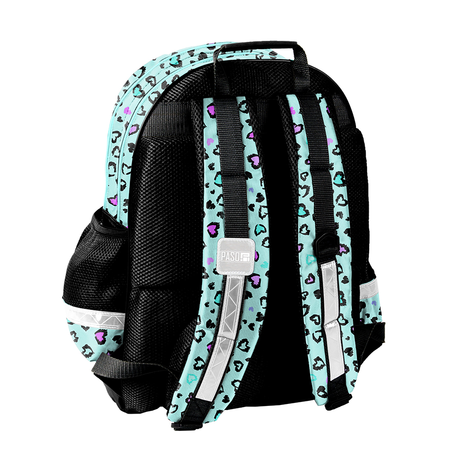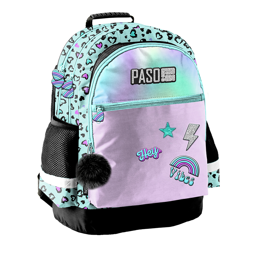 Plecak szkolny z kolekcji Hey od Paso to doskonały wybór dla młodych uczniów! Posiada on dwie pojemne komory, które pomieszczą wszystkie niezbędne przybory szkolne, oraz dwie duże kieszenie z przodu, idealne do przechowywania drobnych akcesoriów. Dodatkowo, plecak zaopatrzony jest w dwie boczne kieszonki z siatki, w których można wygodnie umieścić butelkę z napojem.