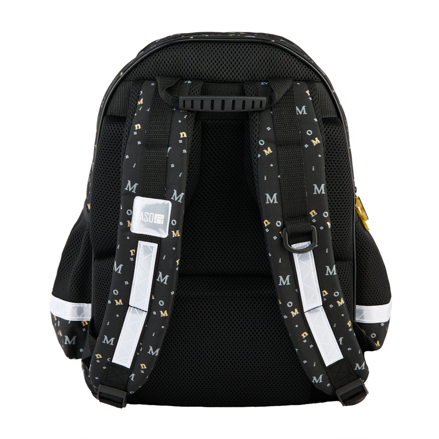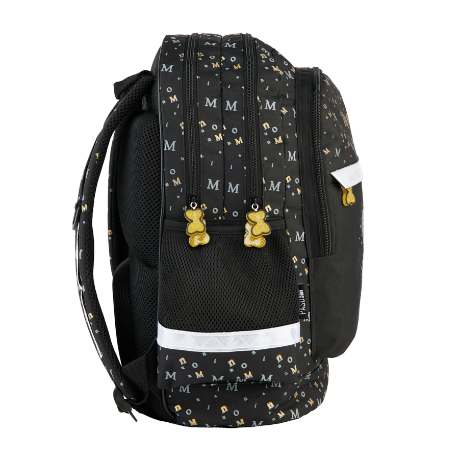 Plecak szkolny Minnie. Plecak posiada dwie pojemne komory oraz dwie duże kieszenie frontowe. Dodatkowo jest wyposażony w dwie boczne kieszonki z siatki, które doskonale nadają się do przechowywania drobniejszych akcesoriów lub butelki z napojem. Usztywnione gąbką, ergonomiczne wyprofilowane plecy oraz regulowane szelki pokryte miękkim materiałem zapewniają dziecku prawidłową postawę i odciążają kręgosłup. Plecak wyposażony jest w usztywnione dno, wzmocnione i zabezpieczone gumowymi stopkami. Na froncie, bokach i z tyłu posiada elementy odblaskowe, które zwiększają bezpieczeństwo. Uszyty jest z materiału odpornego na przemakanie. Idealnie sprawdzi się zarówno w szkole czy na wycieczce.
