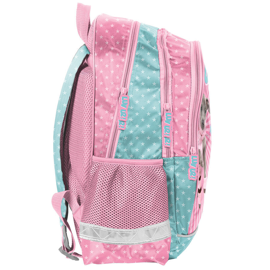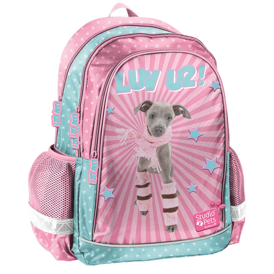 Plecak szkolny Studio Pets to produkt o przemyślanej i ergonomicznej konstrukcji, która zapewnia optymalną organizację przestrzeni wewnętrznej. Plecak wyposażony jest w dwie obszerne komory zamykane na zamek błyskawiczny, a także w kieszeń frontową oraz dwie boczne kieszonki wykonane z materiału siatkowego, które pomieszczą butelkę, mały termos lub bidon. Elementy odblaskowe umieszczone na plecaku zwiększają widoczność dziecka, co przyczynia się do jego bezpieczeństwa. Plecy plecaka zostały usztywnione gąbką, ergonomicznie wyprofilowane oraz pokryte siatką, co w połączeniu z regulowanymi szelkami z miękkiego materiału, wspiera prawidłową postawę ciała dziecka oraz odciąża kręgosłup. Dzięki tym właściwościom plecak charakteryzuje się wysokim poziomem komfortu, co sprawia, że noszenie podręczników oraz zeszytów staje się niezwykle wygodne. Ponadto, plecak posiada usztywnione dno i został uszyty z materiału odpornego na przemakanie.
