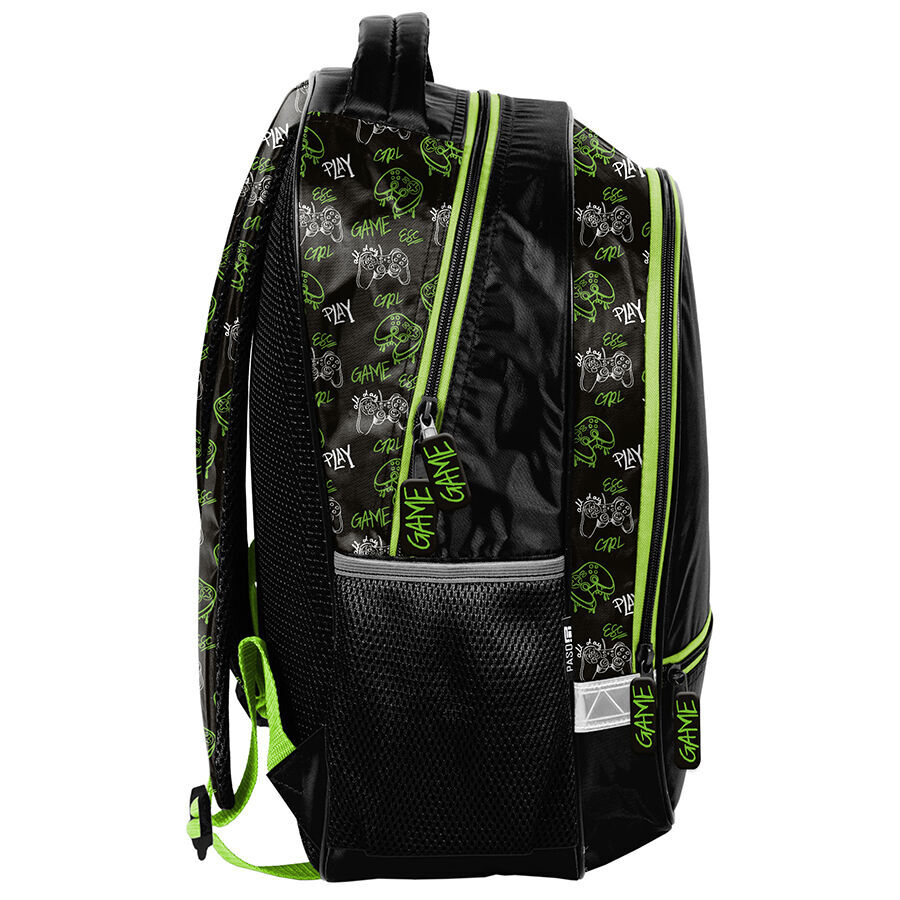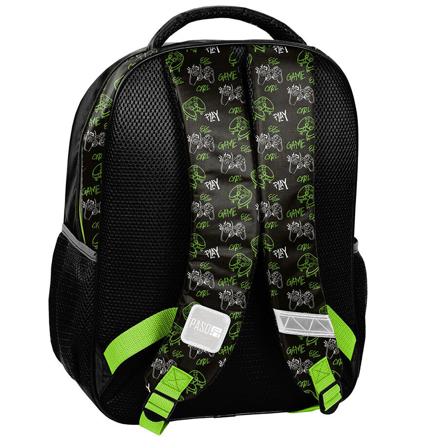 Plecak szkolny Play Game pad marki Paso to produkt najwyższej jakości, który charakteryzuje się dwiema pojemnymi komorami, kieszenią z przodu oraz dwiema bocznymi kieszonkami wykonanymi z siatki. W bocznych przegródkach można z łatwością przechować termos lub bidon. Elementy odblaskowe zamontowane na plecaku zwiększają widoczność dziecka po zmroku, co przyczynia się do jego bezpieczeństwa.