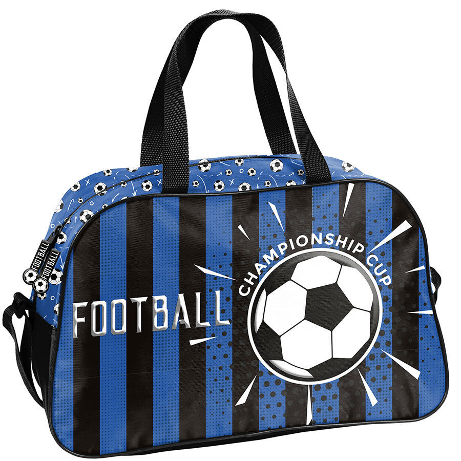 Torba sportowa Championship cup football. Idealna na basen i inne zajęcia sportowe. Świetnie sprawdzi się również podczas wyjazdów weekendowych czy wakacyjnych. Torba posiada jedną pojemną komorę, zapinaną na zamek dwukierunkowy z ozdobnym pullerem. Model wyposażony został w usztywniane dno, dwa wygodne uchwyty do przenoszenia oraz regulowany pasek na ramię o wymiarach min. 60 cm oraz max. 120 cm.