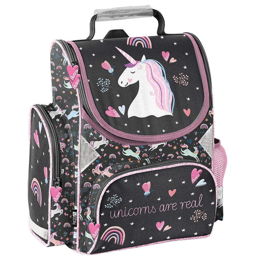 Tornister szkolny Unicorns are real łączy w sobie funkcjonalność i atrakcyjny design. Posiada jedną przestronną komorę, zamykaną na dwukierunkowy zamek z ozdobnymi pullerami, które ułatwiają zamykanie. Wnętrze tornistra wyposażone jest w przegrody, które pomogą dziecku zachować porządek wśród wszystkich potrzebnych przyborów.