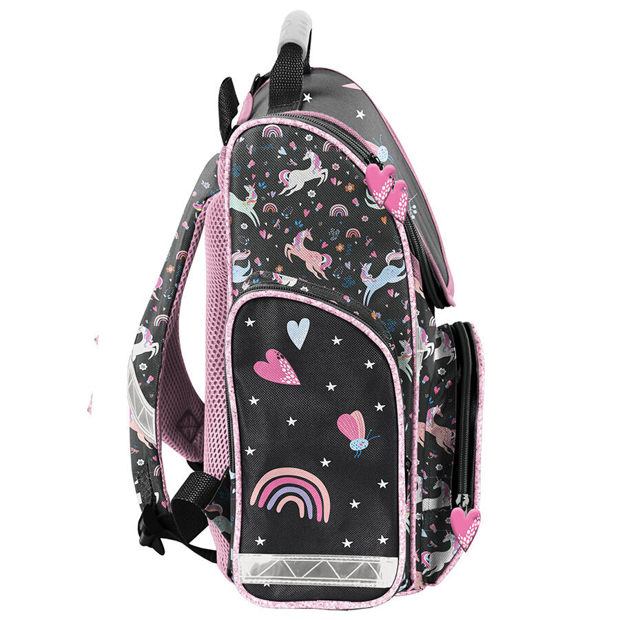 Miękkie, regulowane i profilowane szelki dbają o prawidłową i zdrową postawę dziecka. Tornister wyposażony jest także w usztywniony spód oraz elementy odblaskowe, zapewniając dodatkowe bezpieczeństwo w ruchu.