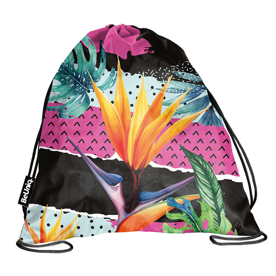 Worek na obuwie z motywem Egzotic BeUniq to produkt jednokomorowy, charakteryzujący się szerokim zakresem zastosowań. Doskonale sprawdzi się jako worek na obuwie, strój gimnastyczny lub niewielki plecaczek. Model ten zamykany jest podwójnym ściągaczem, co zapewnia łatwy i szybki dostęp do jego zawartości. Dodatkowo, podwójne sznureczki umożliwiają noszenie worka na plecach lub na ramieniu. Oryginalne wzornictwo z pewnością wzbudzi zainteresowanie użytkowników, stanowiąc atrakcyjny element codziennych stylizacji.