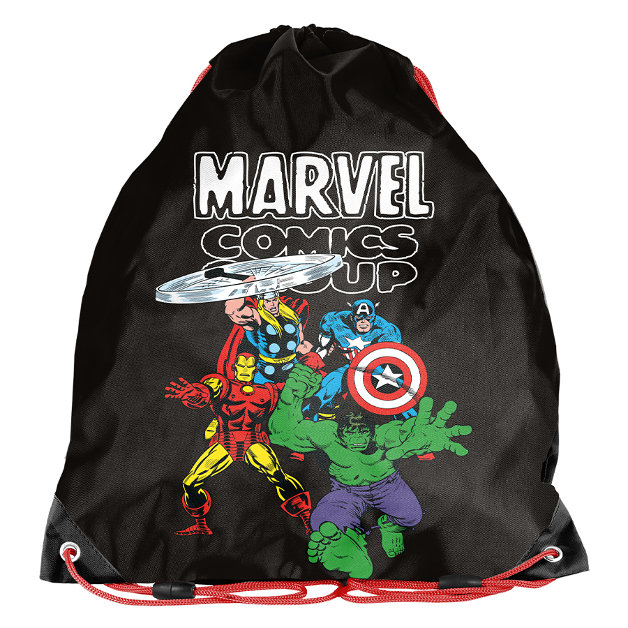 Worek na obuwie Marvel – Avengers. Niezwykle lekki produkt o szerokim zastosowaniu. Pojemna komora główna zamykana podwójnym ściągaczem, zapewni prosty dostęp do zawartości. Sznurki wyposażone zostały w przerywacze zapewniające bezpieczeństwo w przypadku splątania. Podwójne sznureczki umożliwią noszenie worka na plecach lub na ramieniu. Model przeznaczony został do przechowywania obuwia, stroju gimnastycznego lub akcesoriów jako drobny plecaczek.