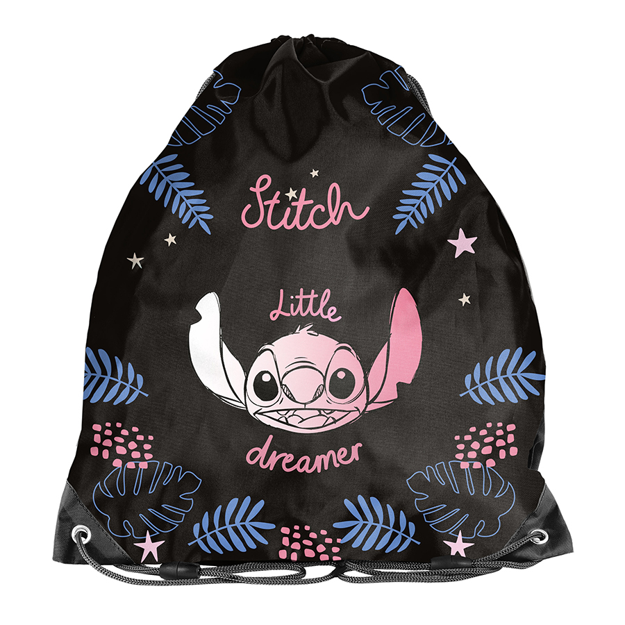 Worek na buty Stitch – Little Dreamer. Bardzo lekki wyrób o różnorodnych możliwościach wykorzystania. Pojemna komora główna z zamknięciem na podwójny ściągacz umożliwi łatwy dostęp do zawartości. Sznurki zostały zaopatrzone w przerywacze, które gwarantują bezpieczeństwo w razie splątania. Podwójne sznureczki pozwolą na noszenie torby na plecach lub na ramieniu. Model stworzony jest do przechowywania butów, odzieży sportowej lub akcesoriów jako mały plecaczek.